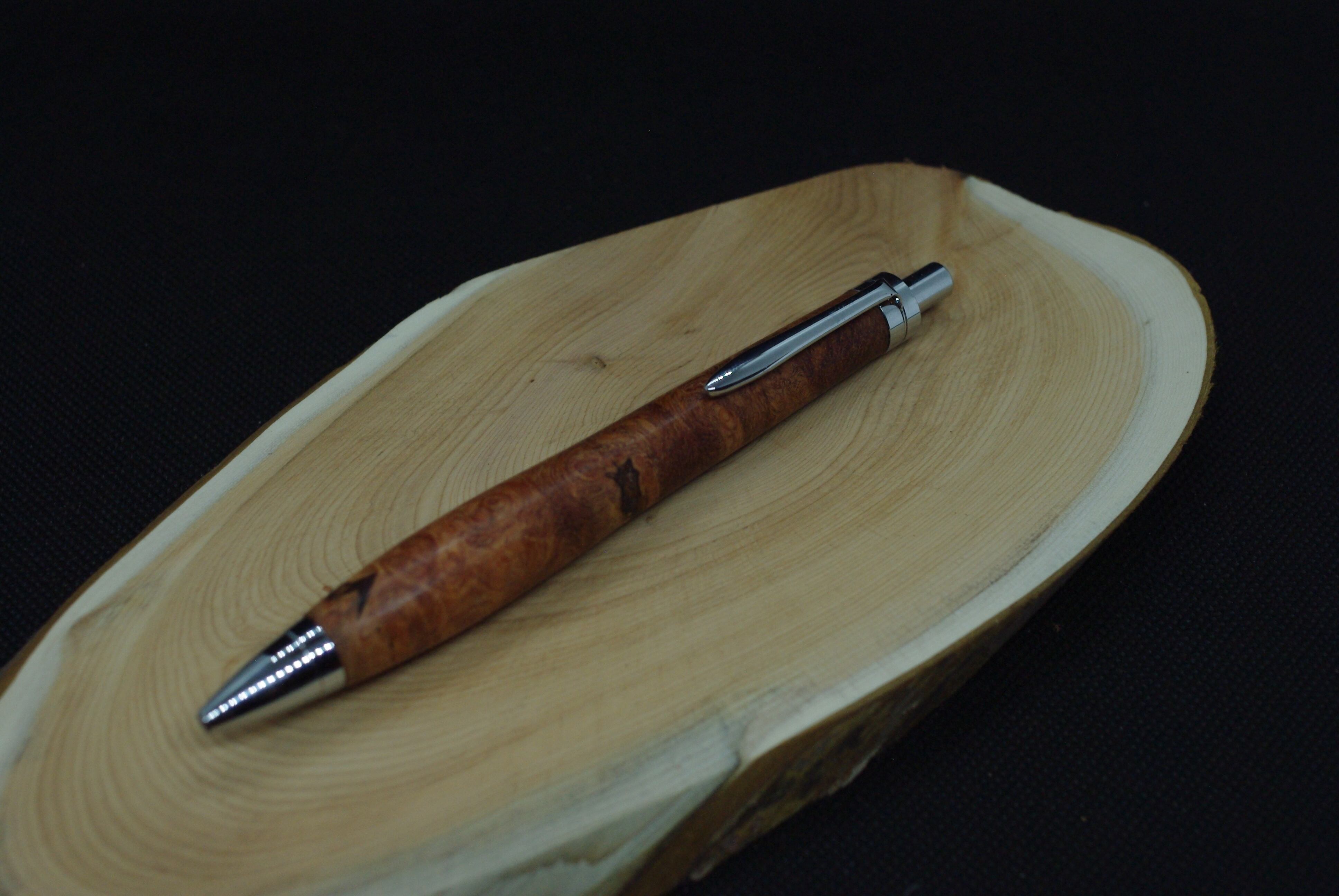 花梨瘤杢を使用した杢工木麟のボールペン新金具です。